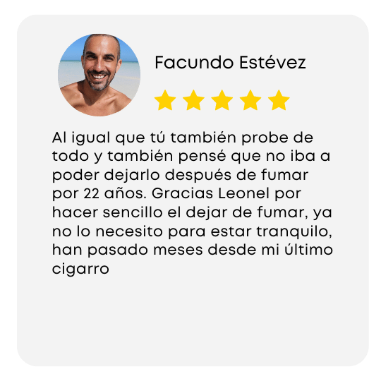Estoy seguro de que la información que recibirás no la vas a encontrar en ningún libro, curso o video de YouTube, porque el método está estructurado con el proceso que viví para terminar con la necesidad de fumar.